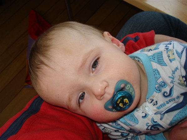 Så er Benjamin blevet syg... hans temp blev lige før billederne blev taget målt til 40... Han er godt pyldret, sover meget, men spiser normalt...