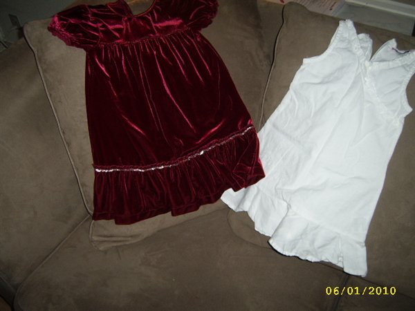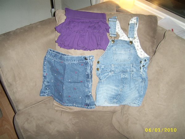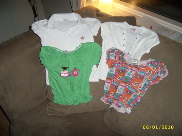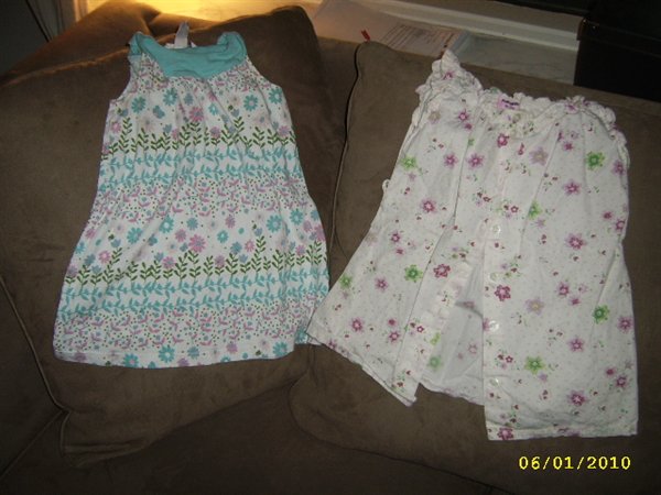 Mamman skriver: Pænt brugt pigetøj i str. 98/lidt i 104 sælges. Der er flg.:7 kjoler, 1 par bukser, 2 langærmede bluser, 4 kortærmede bluser, 3 nederdele og 1 annorakialt 18 stk tøj sælges til 10 kr. stykket ialt 180 kr.