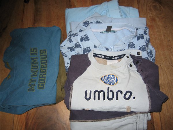 sælger noget tøj der 3 joggindragter. 8 bluser. 6 bukser en jakke med 2 hatte 8 natdragter 2 bodyer og en disney pusletaske.. ønsker bud fra 200 pp