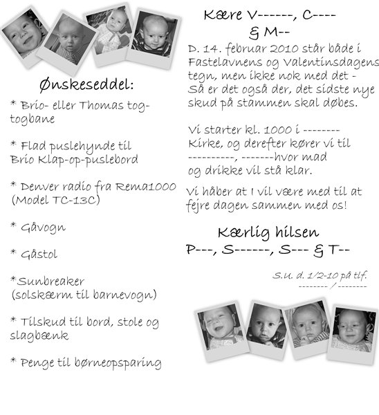 Her er et billed af den invitation jeg lige har fået lavet til min datters barnedåb.