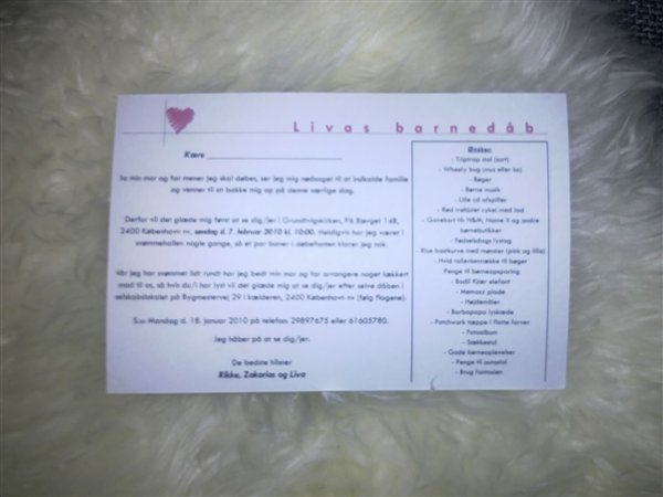 I er hermed inviteret til min barnedåb. Jeg skal døbes