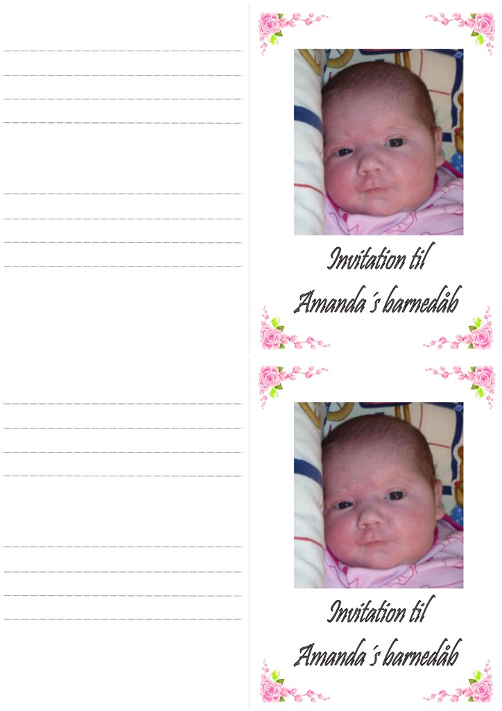 Jeg kunne godt tænke mig at se dig/jer til min dåb d. ...... og efterfølgende til en bid brød med kaffe og kage.
