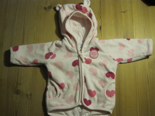 H&M rigtig sød pige fleecejakke med ører, brugt en del i sommers men rigtig pæn, strl 62