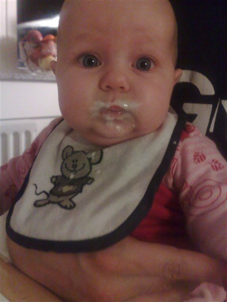 Hihi, hvor er hun smuk, din lille prinsesse .. Med og uden grød i hovedet