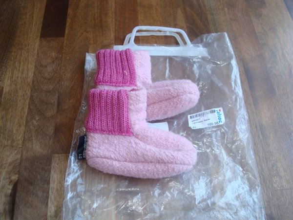 Søde hjemmefutter i uld i pink. De er størrelse 21 og aldrig brugt. De ligger stadig i posen.