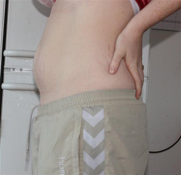 Men nogle får mere røde mærker, som jeg syntes falmer ret flot og så er der nogle som mig som får de mere mørke striber og de er ret svære at komme af med, de er da blevet lidt pænere, syntes jeg selv, men så røg der jo lige nogle operationsar på nu, så nu kan vi starte forfra..