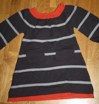 jeg har også en strik kjole i mørke og lysegrå med orange kanter