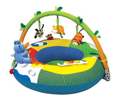 DEN BESTÅR AF EN RING SOM MAN PUSTER OP SÅ BARNET KAN SIDDE SELV UDEN AF FALDE BAGOVER OG SLÅ SIG. HAR DIV. AKTIVITETER.