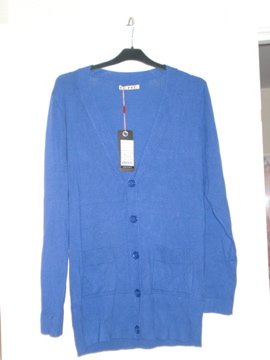 BILLED 6: KOBOLTBLÅ BOMULDS CARDIGAN - STØRRELSE L