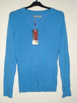 BILLED 7: LYS BLÅ BOMULDS CARDIGAN V HALS - STØRRELSE L