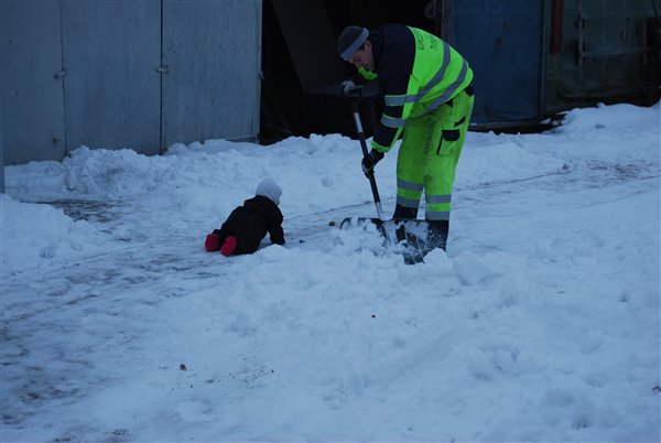 MariaE skriver: Ha, hvor er hun sød i sneen. Tog har vist endnu ikke været ude i den for alvor... Glæder mig til at de 2 krudt ugler skal dele dagpleje, det bliver da så hyggeligt.