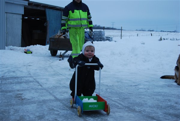 Lige om lidt bliver anne 1 år og idag var hun ude og kravle i sne for første gang rigtig got pakket ind, faktisk så meget at hun ikke rigtig kunne komme op og stå men hun skulle jo ikke fryse. Men lidt billeder er der af det og så er der et med Niels og hans elsket traktor bog og anne ja de billeder taler vist også for sig selv.