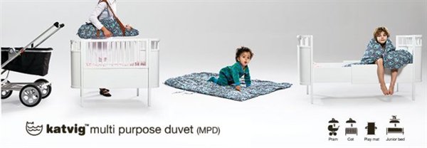 MPD er en dyne som ved hjælp af stropper forandres til en smart bærelift der kan anvendes i barnevognen. Den har en smart snørelukning på oversiden, så barnet ligger godt beskyttet i soveposen. Den faste bund kan fjernes, og den kan bruges som legetæppe. Senere kan dynen tages ud og bruges i sengen til junior.