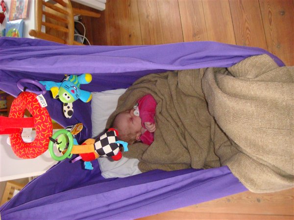 Hun nyder at ligge i slyngevuggen og sover også rigtig dejligt i den. Har du overvejet en til bettemanden?
