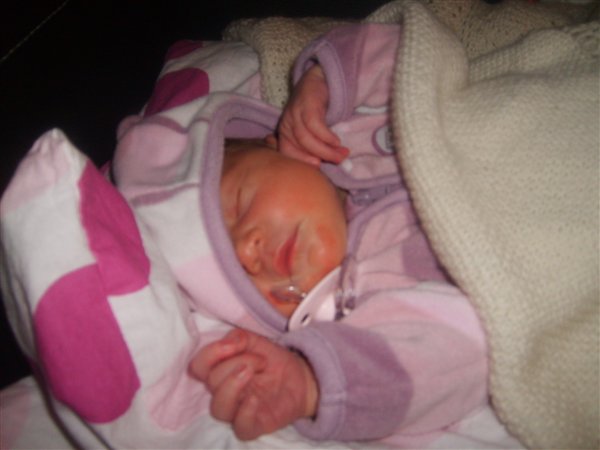 1. Frida få minutter gammel2. Sover godt og trygt på fars mave3. Oliver, Frida og mig4. Så er vi klar til at ta hjem5. Frida, oldemor (min farmor), morfar og mig6. Tager lige en lur på sofaen (mt4 - tøjet passer bare perfekt)7. Frida sover sødt i sin vugge8. Close up