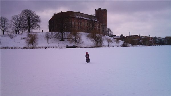 og er blevet ret god til det... og så har vi været ude og gå en tur på den frosne slotssø... Jessica synes det var ret sjovt og ku slet ikke forstå at vi gik der hvor der normalt er vand