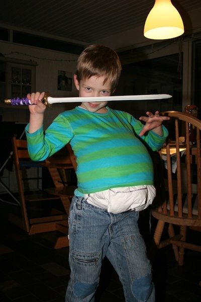 3 & 4. Børnene iklædt tykke maver. Ligesom mor. Nanna skraldgrinede over sin tykke mave.