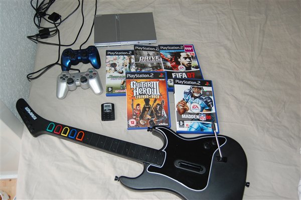 5 spil (guitar hero 3 "legends of rock", smash court tennis 2, MADDEN 08, FIFA 07 og DRIVER parallel lines)