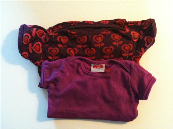 1) lilla body str 50, aldrig brugt + mønstret body str 68, aldrig brugt