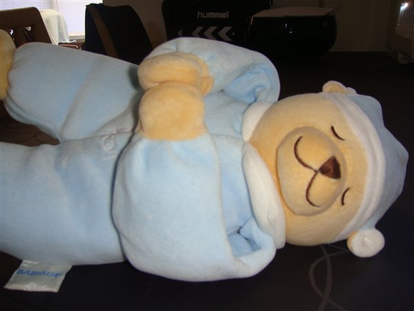 Doodoo sovebamse, der efterligner moderens hjertelyd og lyd i livmoderen. Kan også spille en anden melodi. Aktiveres ved barnets gråd eller anden lyd.