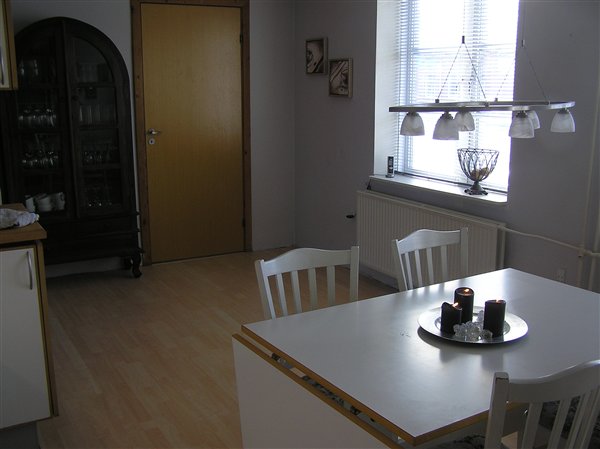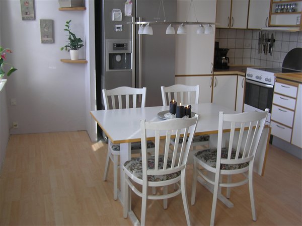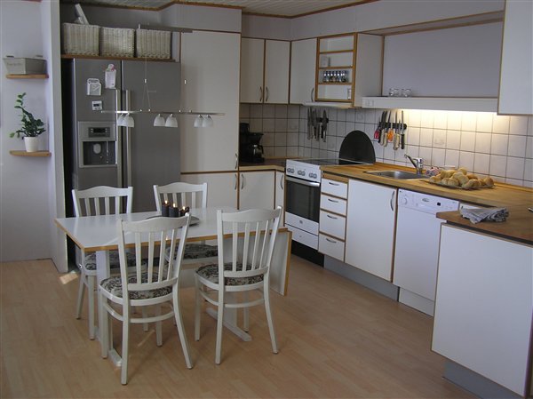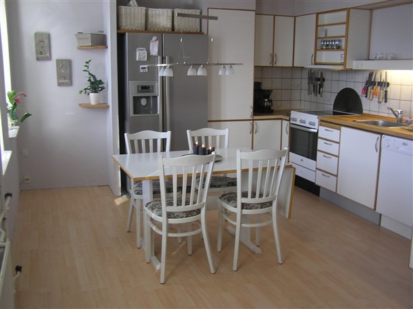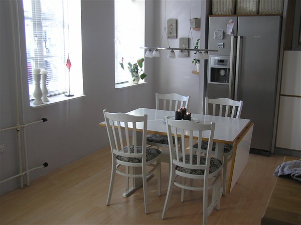 og Trold min ven...lad dig ikke snyde, det er ikke noget design over det her...den store skabslåge, falder ned on off, og konstant, og det er et køkken fra 1970, som min fatter hamstrede ved en kammy, og siden lavede han selv lågerne til det, med lister og det hele...det er homemade, af hvad man har kunne finde, det grimme spisebord er arvet fra svigermekanikken, og det er ved af falde fra hinanden...så der er bestemt ikke noget fancy over det.