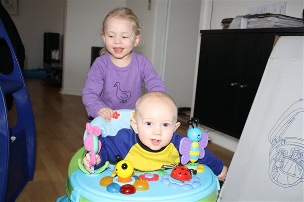Han er en kæmpe ved siden af Stella, vokser og trives som han skal, men hold op hvor glæder jeg mig til han kan komme rundt selv!