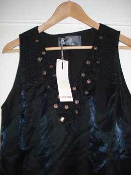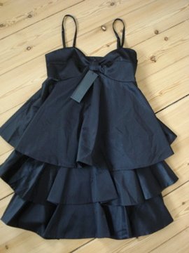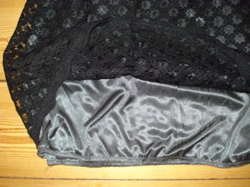 BILLED 23 og 24: FLOT KJOLE med indenvendigt petrolium/mørkegråt foer og udenvendigt flot sort blonde. Er meget elastisk og fleksibel i stoffet så passes af BÅDE str S og M - også som gravid (passer den selv) - Nypris 400 kr - sælges til KUN 150 kr