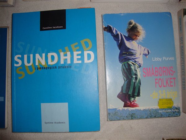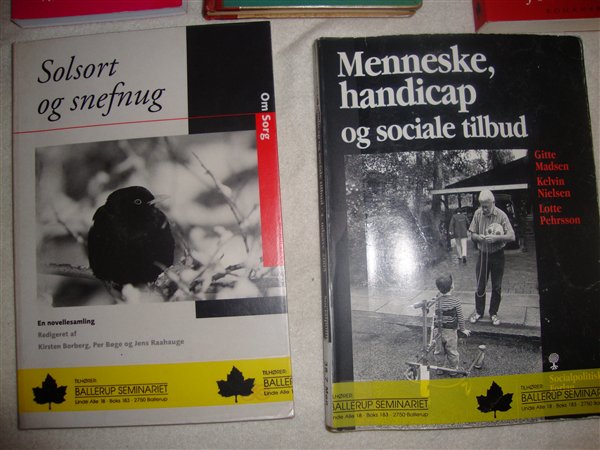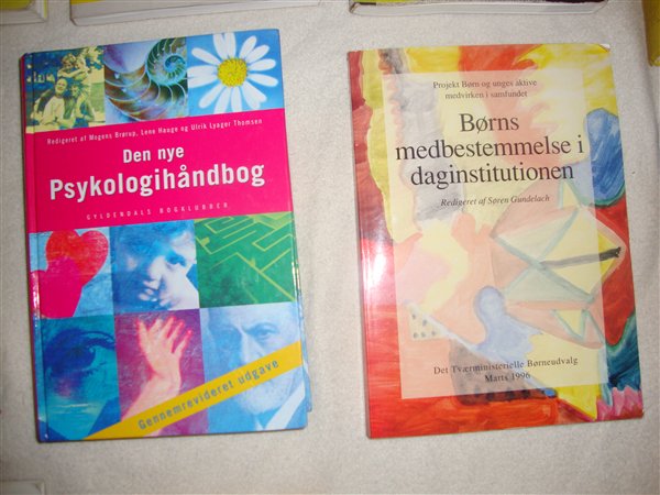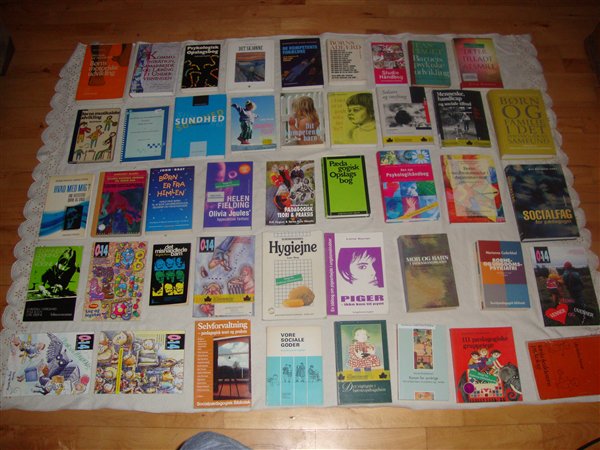 Mange af bøgerne kan også bruges til andre pædagogiske eller psykologiske studier. Eller til bare at læse, for at skabe sig viden om et emne. Jeg har købt en del af bøgerne brugt, men er meget ”øm” om mine bøger, så de er alle sammen i pæn stand. D em jeg har købt fra nye, kan man ikke se at de har været åbne. Meget få af bøgerne indeholder skrevne noter, og overstegninger. Bøgerne kan evt. hentes i Smørum.