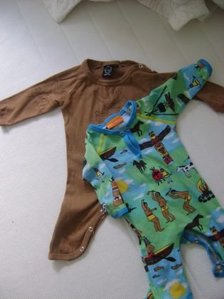 2 lækre heldragter i str. 56. Brugte men i fin stand. Ingen pletter.Den brune er fra idaT og den blå med indianere er fra Hugin & Mugin.Kom med et bud....