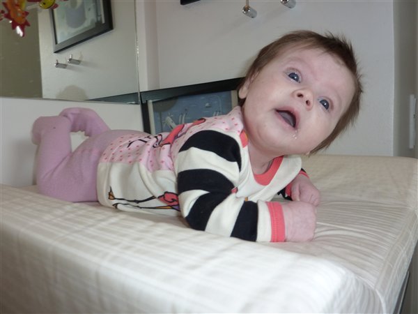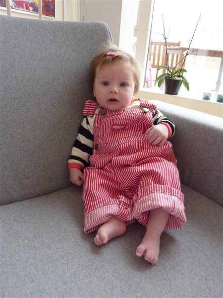 I mandags var hun 4800 gram og 61 cm (3650 gram og 51 cm v fødsel). Hun tog ikke så meget på og jeg har kæmpet og kæmpet som en gal for at få hende til at spise hos mig, og det har givet pote, så alt er fint med det nu