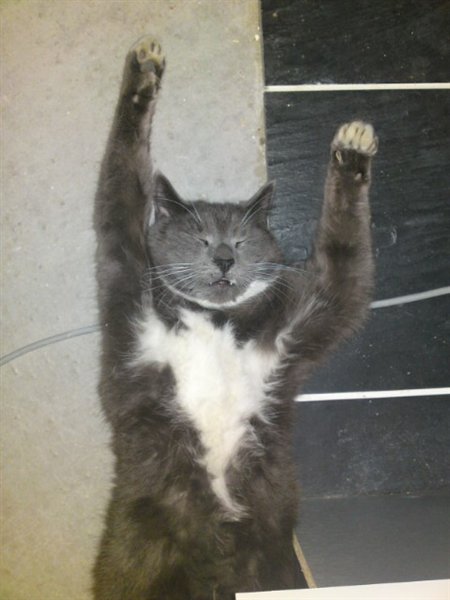 Ha ha, nej han ligger skam og feder den og eeeeelsker gulvvarmen så han har nærmest ligget og fladet ud siden vi fik sne! Har taget lige omkring 2 kg på på de mdr, ha ha!