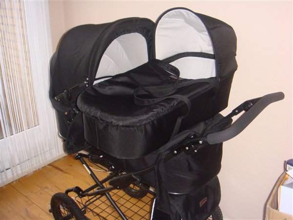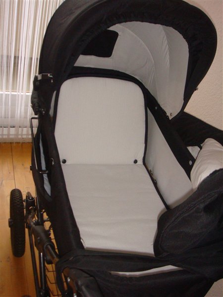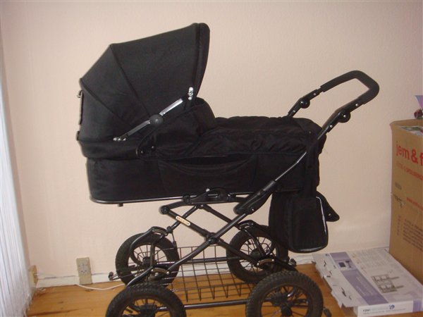 Basson barnevogn, ca 93 cm liggemål, med lift , pusletaske, ingen pletter, kan stort set ikke se det er blevet brugt et par gange.