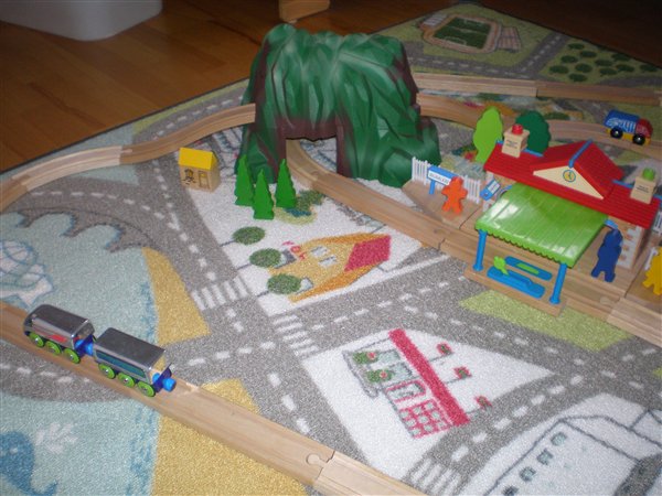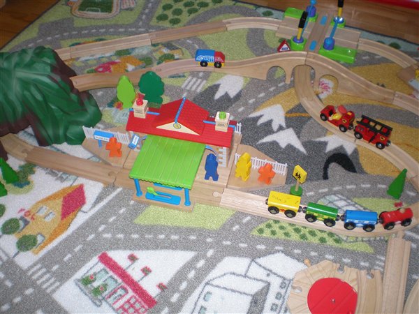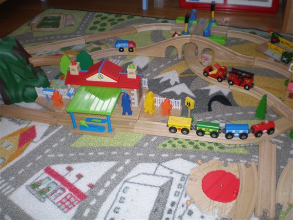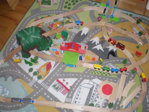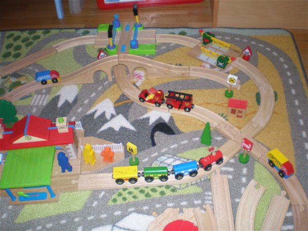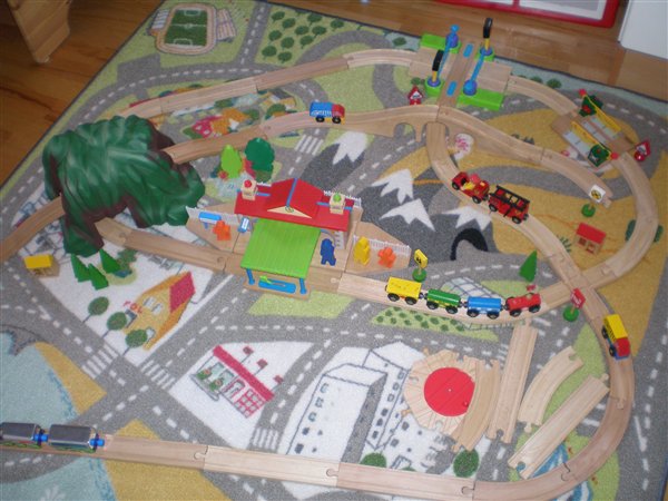 Stor BRIO togbane. De fleste skinner er dog ikke BRIO, men de passer sammen med BRIO.