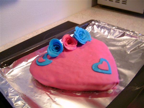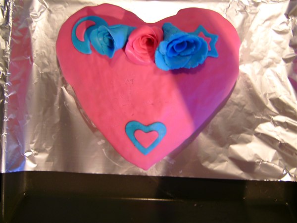 Så fik jeg og SarahAa lavet vores jomfru kage sammen, og hold da op et arbejde det er at lave det fondant