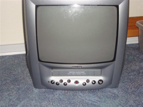 tv (mærket philips) med indbygget videoafspiller sælges. der medfølger en stor kasse videofilm, bla. 35 disney klassikere.