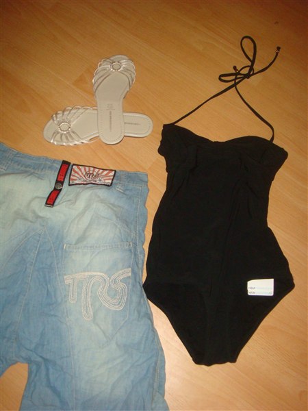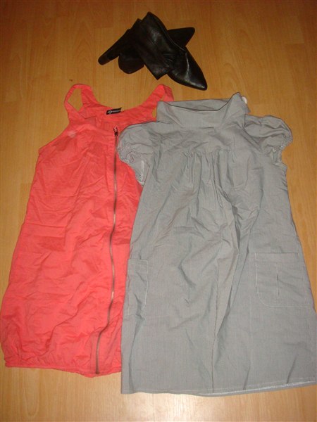 Det er sko str. 37 og baggybukser, kjoler, badedragt, skjorter og trøjer i str. 24 og Small (aldrig brugt).