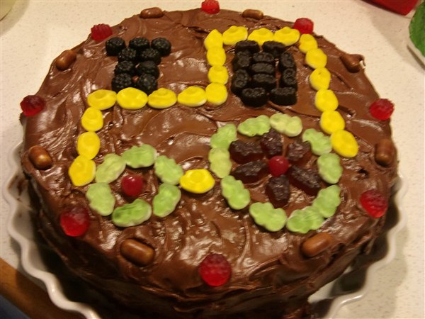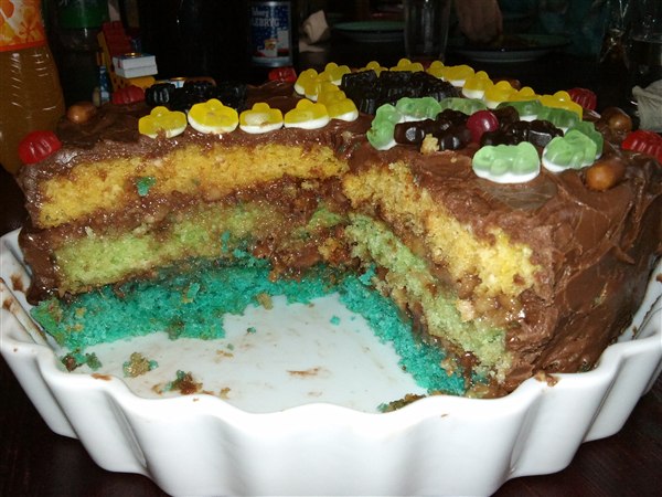 Så har den stået på kagebageri den sidste uge. Her er lidt billeder af hvad det er blevet til. Den brune med traktor var til Sophus´ fødselsdag, det er bananlagkagebunde i gul, grøn og blå lagt sammen med banan og nutella. så er der mit forsøg på regnbuemuffins(regnbuevulkaner) de hævede helt vildt. Tilsidst en påskekage, det er lyse og mørke lagkagebunde lagt sammen med pærecidermousse og toblerone/lys chokoladecreme. Den blev jeg nødt til at lave for at prøve mine bogstaver.... om jeg nu kunne finde ud af det, hi hi hi