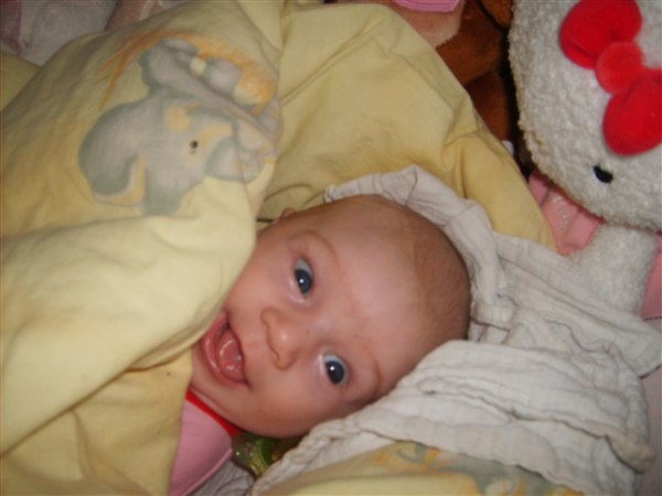 Vi havde også børn fra både maj, juli og august, det var simpelthen et for stort spring. Men den her mg med Frida er alle baby'erne fra februar, det synes jeg er rart. Ellers vokser hun bare og trives, hun er skøn og dejlig og har bare det dejligste smil. Hun lyder helt op.