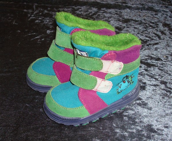 Lækre støvler i størrelse 19-20 (ved ikke hvilket mærke). Brugt en del.Har velcro-lukning på indersiden af benet, og er forede inden i.