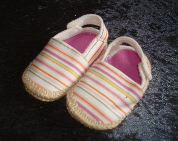 En sommer-agtig sko med flet-kant og gummesål.Tror de er fra H&M, str 21. Ubrugte (stadig papirfyld ude i snuden)