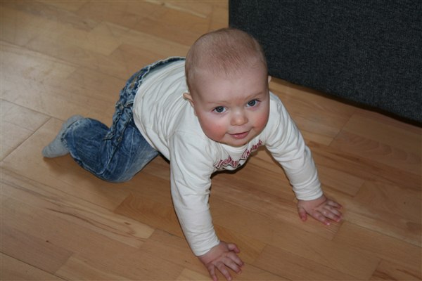 Mikas begyndte i vs i tirsdags. Det er gået ok men det er sindsygt hårdt for ham fordi han jo klart foretrækker at være hos mor, far eller mormor (faktisk kan ingen andre holde ham..) Idag har han for første gang været glad og har siddet og leget derovre så det er gode tegn. Hans vs har indtil nu været fantastiske, idag har der været sygdom iblandt personalet men alligevel har der været en inde sammen med ham så de kun har været de 2 hele formiddagen. Han er næsten ved at kunne kravle, han har i weekenden lært at komme op og sidde selv når han har møffet rundt på maven. Det går bare stærkt nu..