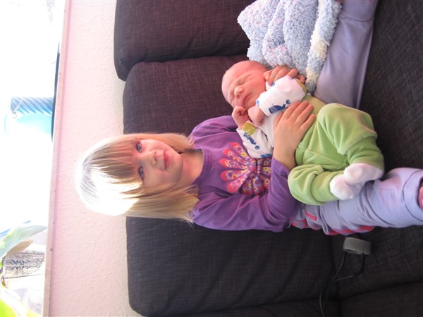 Det hele går bare stille og roligt. Karoline er bare super søster. Hun forguder lille manden og har ikke rigtig vidt noget form for jalouxi. Dog prøver hun rigtig grænser af, men det gjorde hun nu også før...