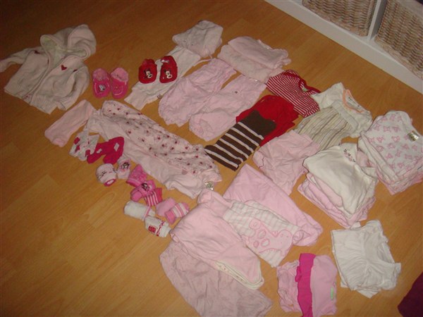 Chritinap skriver: Det meste er NYT, resten er vasket en gang. Kan afhentes i Silkeborg, eller sendes. Der følger gratis et lammetæppe samt en helt ny 'nat uro' med fra BabySam (hvide og lyserøde bamser).