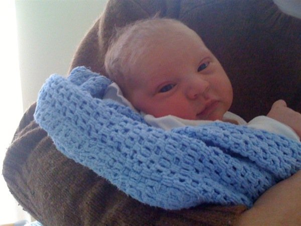 Fredag d. 30. april kl 02:12 kom lille Johanna Liv til verden efter 26 timer med veer. Vi er lige kommet hjem fra sygehuset i dag og er på én gang helt opslugte af det lille pus og lidt udslidte. Jeg skriver en rigtig fødselsberetning senere. Indtil videre et billede af vores guldklump på fars arm få timer efter fødslen.