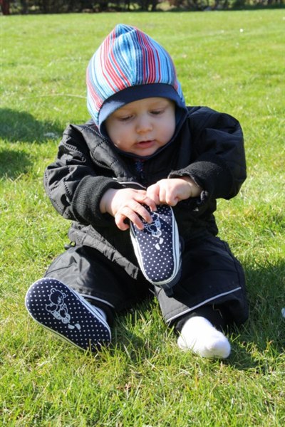 Han kan selv holde balancen når han står (Altså med måde og med reflekserne i orden fra moderens side - Balance aner han ikke hvad er endnu