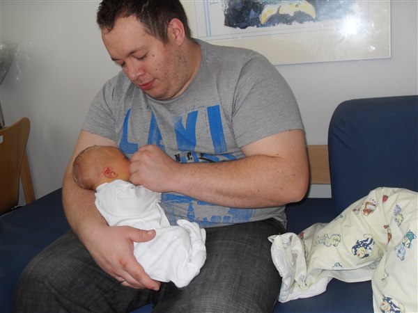 Vi fældede begge et par tårer. Han kom direkte til børnelægen som var på stuen da han havde været stresset under fødslen så han fik lidt ilt og blev suget lidt i munden og kom hen på brystet hos mig, lå med de største smukkeste øjne og kiggede på os og så kom følelserne op igen.