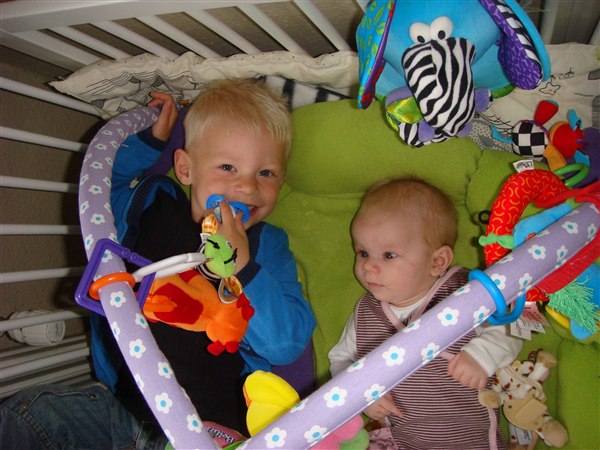 Hun ELSKER hendes storebror. Han kan bare få hende til at klukke af grin på ingen tid og hun sluger råt alt hvad han gør!