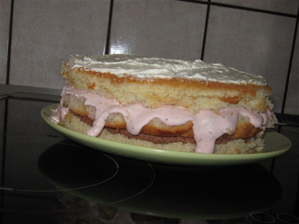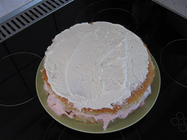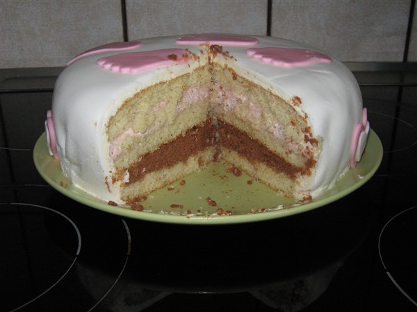 så håber den er spiselig.. hehe.. den er med toblerone og jordbærcreme..