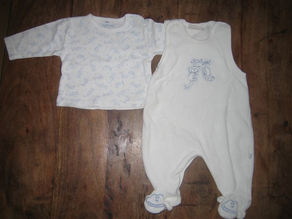 Jeg har lidt forskelligt babytøj til salg. Det er altsammen i str 56. Enkelte ting er mærket mk i nakken med kuglepind.