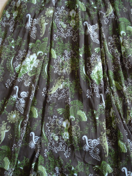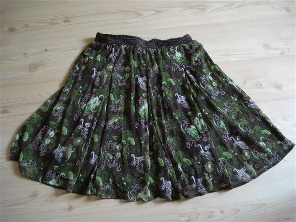 H&M str. 42, brugt men fin. Grøn nederdel med fine mønstre.